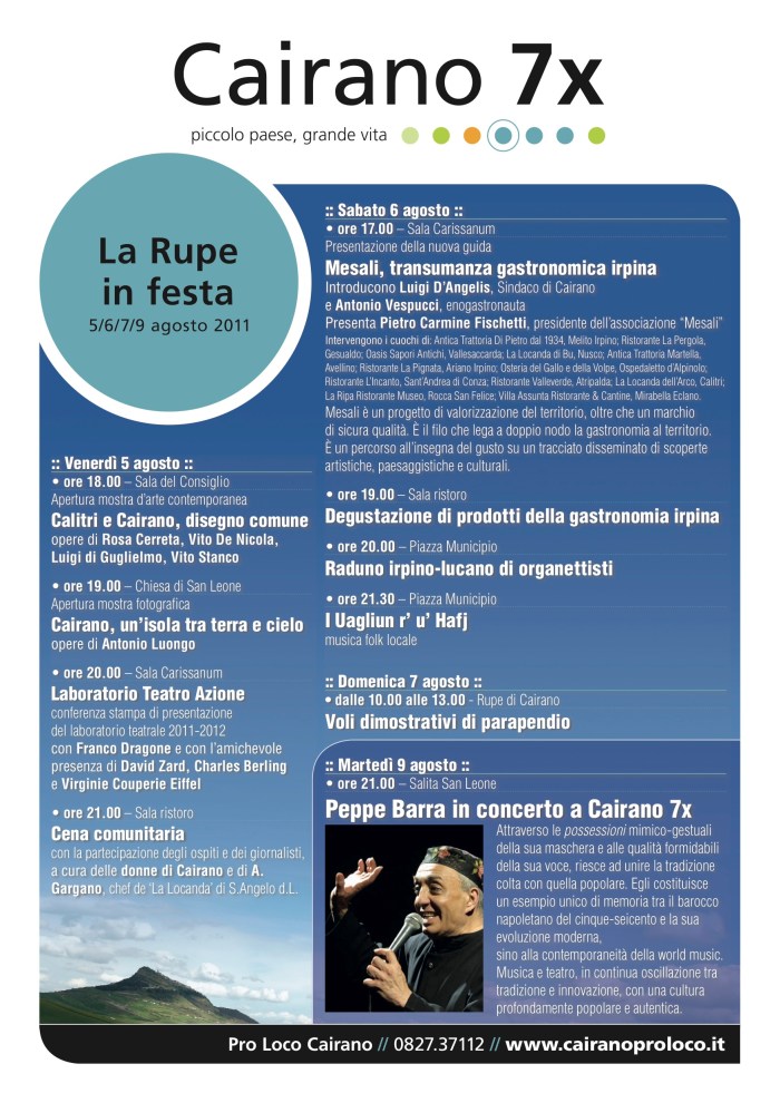Vi invito a vedere il sito della Pro Loco di Cairano, web master Edgar Schiavone, co-autore e consulente tecnico anche di questo Blog.