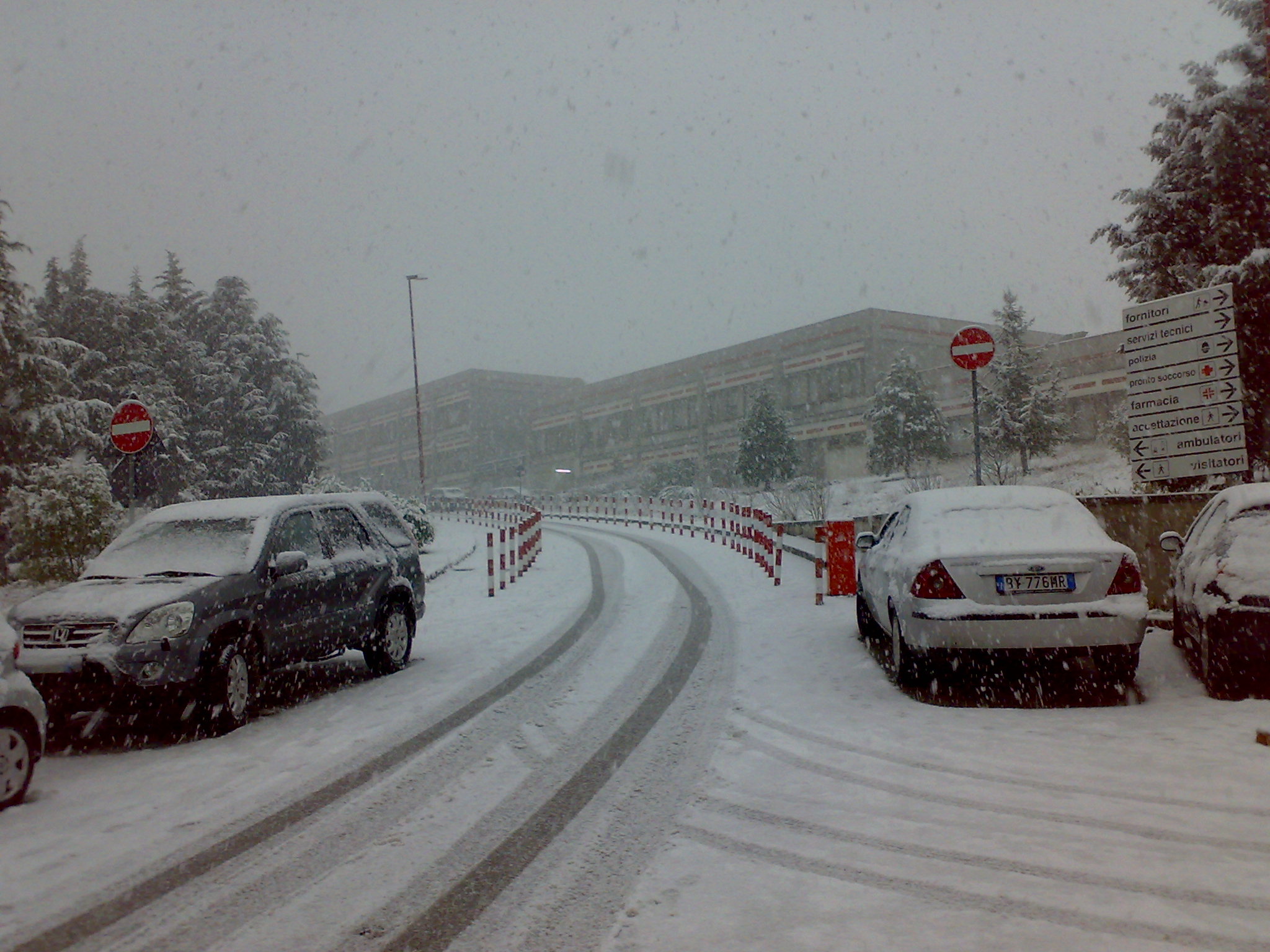 dopo ore di nevicata, ancora NESSUN MEZZO per togliere la neve dall’ELIPORTO – PRONTO SOCCORSO. Sono all’opera i mezzi del Comune per garantire ai cittadini l’accesso all’area dell’ospedale.