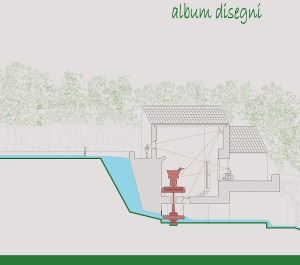mulino ad acqua, con 2 ruote orizzontali ed una verticale