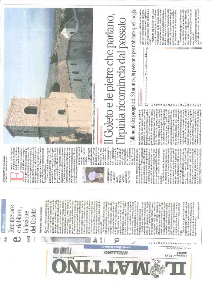 Sono cinquant’anni che con occhio di chi progetta, cioè di chi si occupa del come trasformare, frequento l’Irpinia. Ne conosco le montagne, le valli verdi, i paesaggi, gli abitati. Malgrado gli affronti del periodo post-terremoto -tanti interventi impropri- malgrado infrastrutture incapaci di trasformarsi in nuovi paesaggi, la verde Irpinia è una terra meravigliosa, carica di senso, con colori e profili eccezionali. Venerdì eravamo al Goleto: un monumento straordinario per quello che era e per come è stato possibile reinventarlo con colti e sapienti interventi. È un insieme che lascia senza fiato nelle diversità che offre di notte e di giorno -con il buio e con la luce- e per come intrecci nuovo ed antico. Il Goleto non è solo un luogo, è ormai diventato il simbolo concreto di come si possa agire in queste realtà.