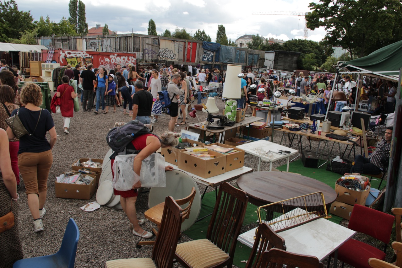 26 8 2012 Berlino, Prenzlauerberg. Mercato domenicale nel quartiere europeo dei giovani artisti. 16.000 giovani italiani, in gran parte laureati, si sono trasferiti a Berlino negli ultimi 10 anni. Sullo sfondo, dietro al tavolato, resti del Muro. Facciamo fatica a pensare che il Muro è stato demolito ‘solo’ pochi anni fa. Nel 1989. Poco fa.