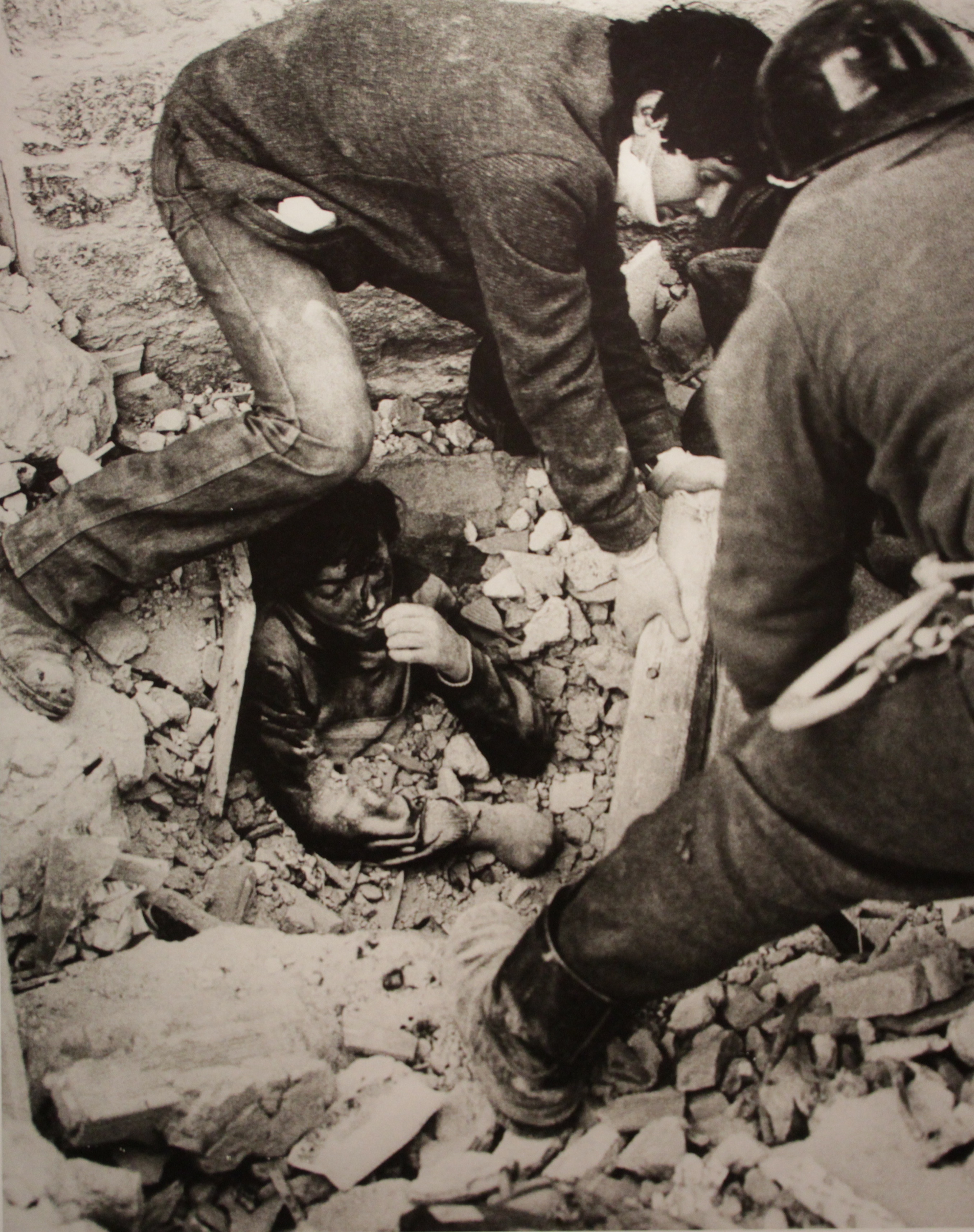 QUESTA FOTO E’ TRATTA DALLA MOSTRA FOTOGRAFICA “FATE PRESTO”, a cura di Mimmo Jodice e in esposizione permanente presso la Villa d’Ayala a Valva (Sa). Il ragazzo che si vede tra le macerie si salvò.