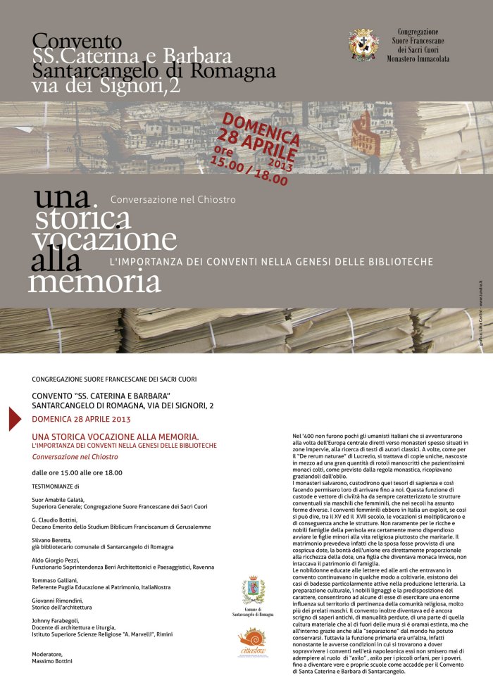 Conversazione nel Chiostro “Una storica vocazione alla memoria. L’importanza dei conventi nella genesi delle biblioteche”.