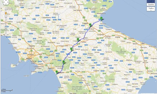 Il tracciato scelto unisce il Mar Tirreno al Mar Adriatico, in un ideale abbraccio fraterno fra Campania e Puglia,