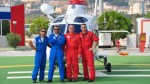 Foto 3 Personale sanitario in rosso, pilota e tecnico in blu.