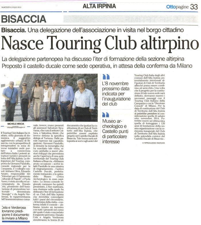 IN IRPINIA SI STA AVVIANDO UN ‘CLUB DI TERRITORIO TCI’. Invitiamo i soci TCI residenti in Irpinia, interessati all’iniziativa, ad inviare una mail di disponibilità a piccolipaesi@gmail.com _