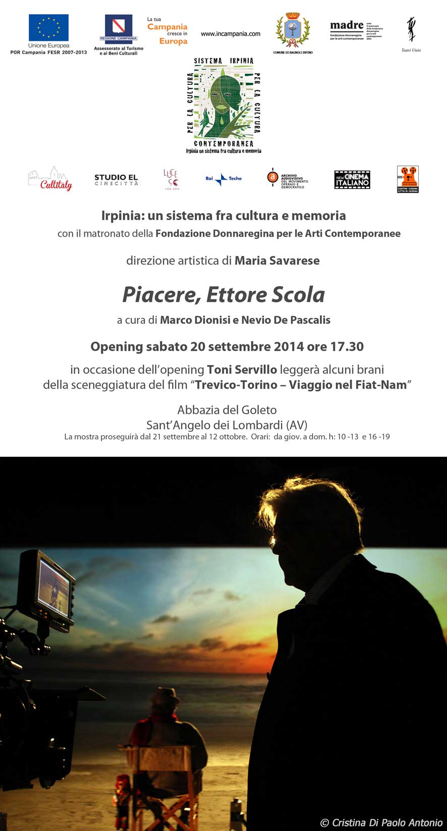 Il ciclo di appuntamenti del progetto Irpinia: un sistema fra cultura e memoria si apre con Piacere, Ettore Scola, la prima mostra monografica dedicata a uno dei più grandi registi italiani.