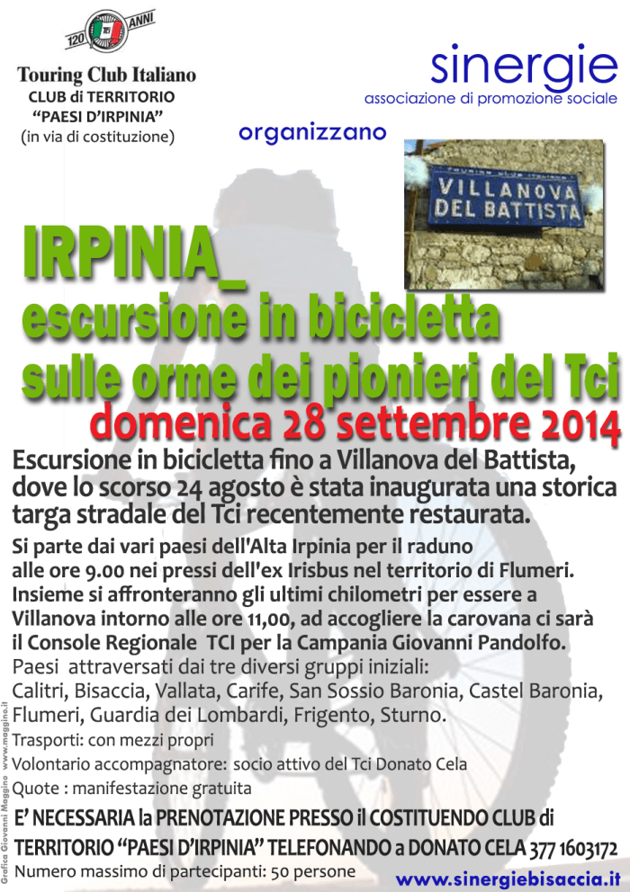 Quando l’Irpinia vuole, sa come rendersi amabile e farsi bella. Una terra, la nostra, ancora capace di accogliere; col sorriso, in silenzio. Sabato 27 settembre 2014 si è tenuta nel borgo medioevale di Castelvetere sul Calore (Av) la convention annuale dei fiduciari campani del Touring Club Italiano. La sessione formativa, tenuta da Anna Rita Deceglie e Giulio Lissi della direzione nazionale, si è svolta all’interno della sala dell’ex-Oratorio che si è ben prestata dopo i restauri effettuati negli scorsi anni. Gli ospiti erano seduti parte su poltroncine nel mezzo della sala, parte sugli scanni del coro ligneo perimetrale. Il saluto introduttivo è stato tenuto da Giovanni Romano, sindaco di Castelvetere, da Giovanni Pandolfo, console regionale e da Angelo Verderosa, console per l’Alta Irpinia. Camillo De Lisio, socio storico TCI e medico originario di Castelvetere si è premurato di organizzare la visita guidata per gli accompagnatori dei convegnisti; sono stati quindi aperti per l’occasione i monumenti più significativi del centro storico ed è stata tenuta una lezione di cucina sulla preparazione della pasta fatta a mano locale, detta ‘maccaronara’. La Cantina Sullo ha partecipato un’apprezzata degustazione nella corte del comparto ‘castello’. L’accoglienza generale nel borgo e l’ottimo pranzo sono stati curati da Agostino Della Gatta di IrpiniaTurismo e da Gerardo Stabile di Federalberghi. Nel pomeriggio, Beniamino Palmieri, sindaco di Montemarano ha curato l’accoglienza all’interno del prestigioso “Museo Etnomusicale Celestino Coscia e Antonio Bocchino”. La visita guidata è stata tenuta dal Prof. Luigi D’Agnese dopo di che vi è stata un’interessante e partecipata lezione di tarantella montemaranese tenuta dai docenti dell’omonima scuola. La giornata si è conclusa con una visita al centro storico di Montemarano attraverso i vicoli medioevali fino alla Cattedrale dell’ex-Diocesi. E’ significativa e di buon auspicio la scelta operata dal Touring Club Italiano che per la prima volta ha scelto per la sua manifestazione annuale un piccolo paese dell’entroterra irpino. Prossimo appuntamento significativo del TCI in Irpinia : mercoledì 19 novembre 2014 per una giornata dedicata alla presentazione del Progetto ‘BANDIERA ARANCIONE’, il marchio di qualità turistico ambientale del Touring riconosciuto ai paesi dell’entroterra inferiori a 15.000 abitanti.