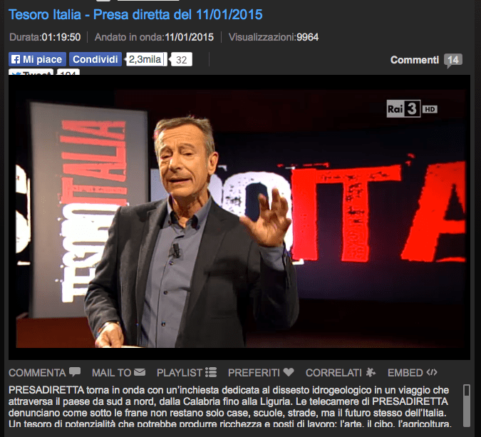 TESORO ITALIA / ‘Presa Diretta’ _ puntata dell’11.1.2015 (i tesori del Sud)