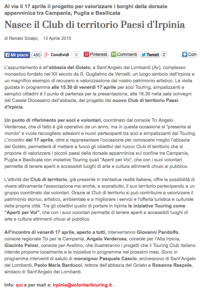 Presentazione del CLUB di TERRITORIO ‘PAESI D’IRPINIA’ all’Abbazia del Goleto 17 aprile 2015 _ LE FOTO » Schermata 2015-04-20 alle 00.05.47