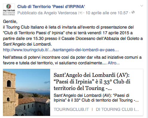 Presentazione del CLUB di TERRITORIO ‘PAESI D’IRPINIA’ all’Abbazia del Goleto 17 aprile 2015 _ LE FOTO » Schermata 2015-04-20 alle 00.06.03
