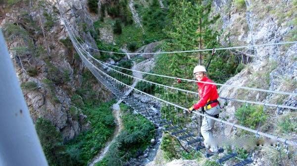Si tratta di un’opera estremamente leggera e a ridotto impatto estetico visivo con una forte valenza simbolica e architettonica. La struttura è infatti costituita essenzialmente da cavi in acciaio speciale che corrono da parte a parte del vallone delle Conche e da un piano di calpestio in grigliato antiscivolo che consente di “vedere attraverso”.