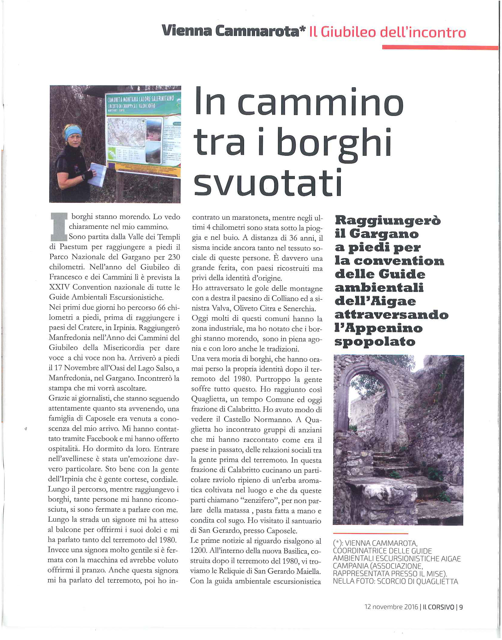 L’esperienza di Vienna Cammarota, in cammino tra i borghi in occasione dell’anno dei cammini in Europa. Passaggio in Irpinia. Pubblicato su ‘Il Corsivo’ 12.11.2016.