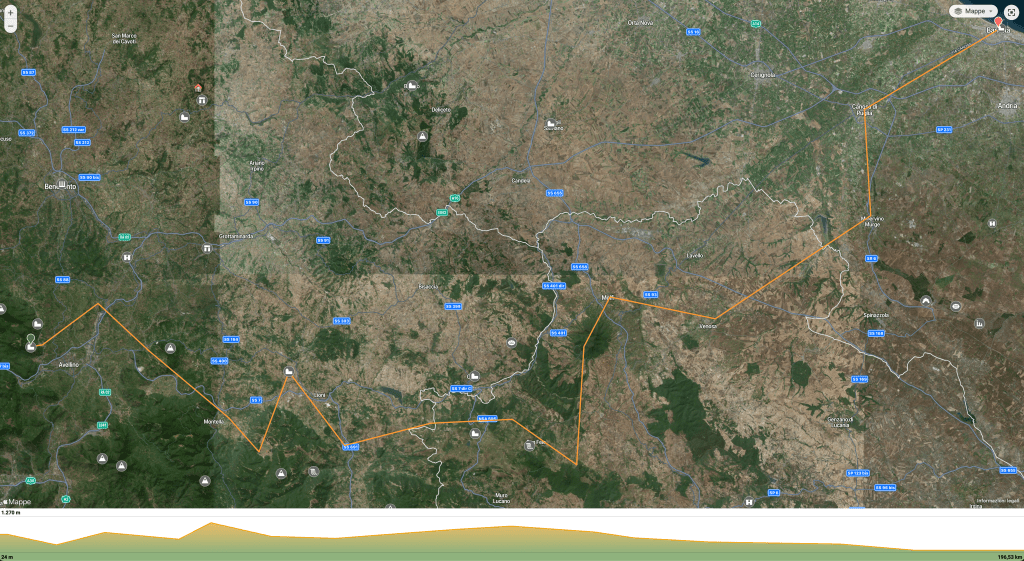 300 km., 3 regioni, 30 comuni attraversati in 15 tappe: dalle montagne d’Irpinia fino alla Basilica del Santo Sepolcro di Barletta, luogo di imbarco per la Terra Santa; ecco i comuni attraversati e le tappe previste: