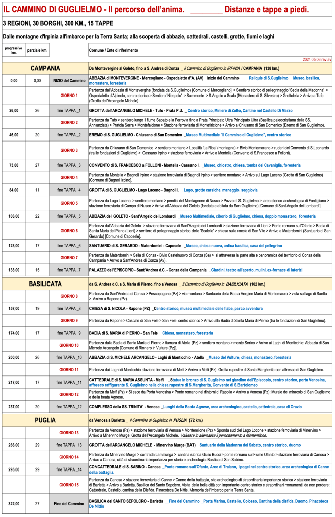 CAMMINO DI GUGLIELMO – Tappe, Distanze, Mappe.
