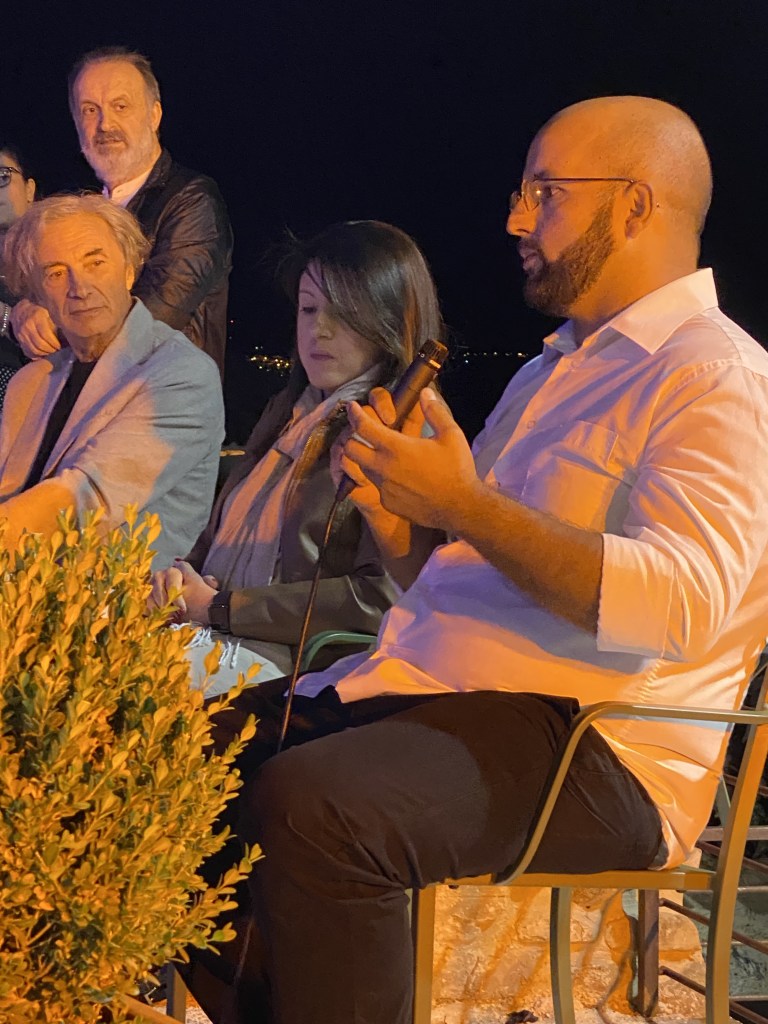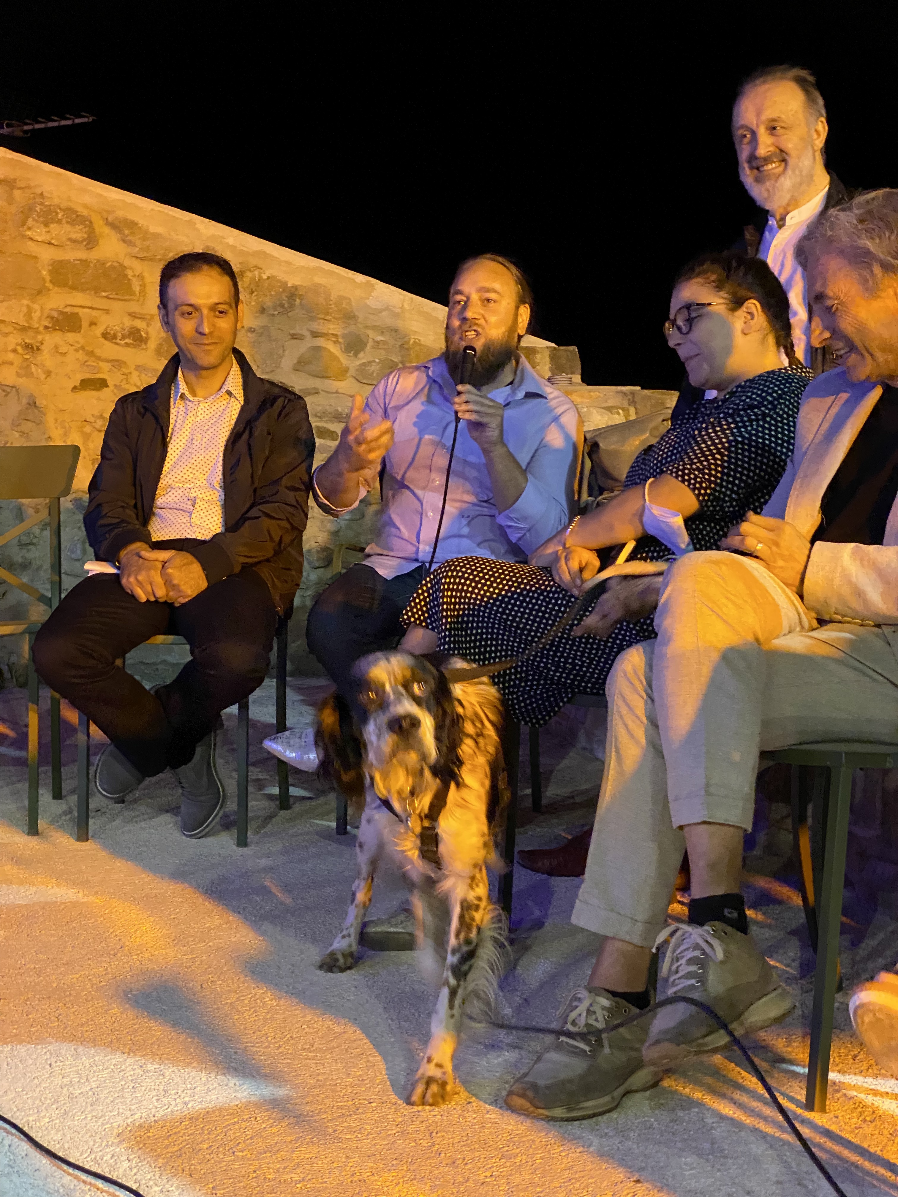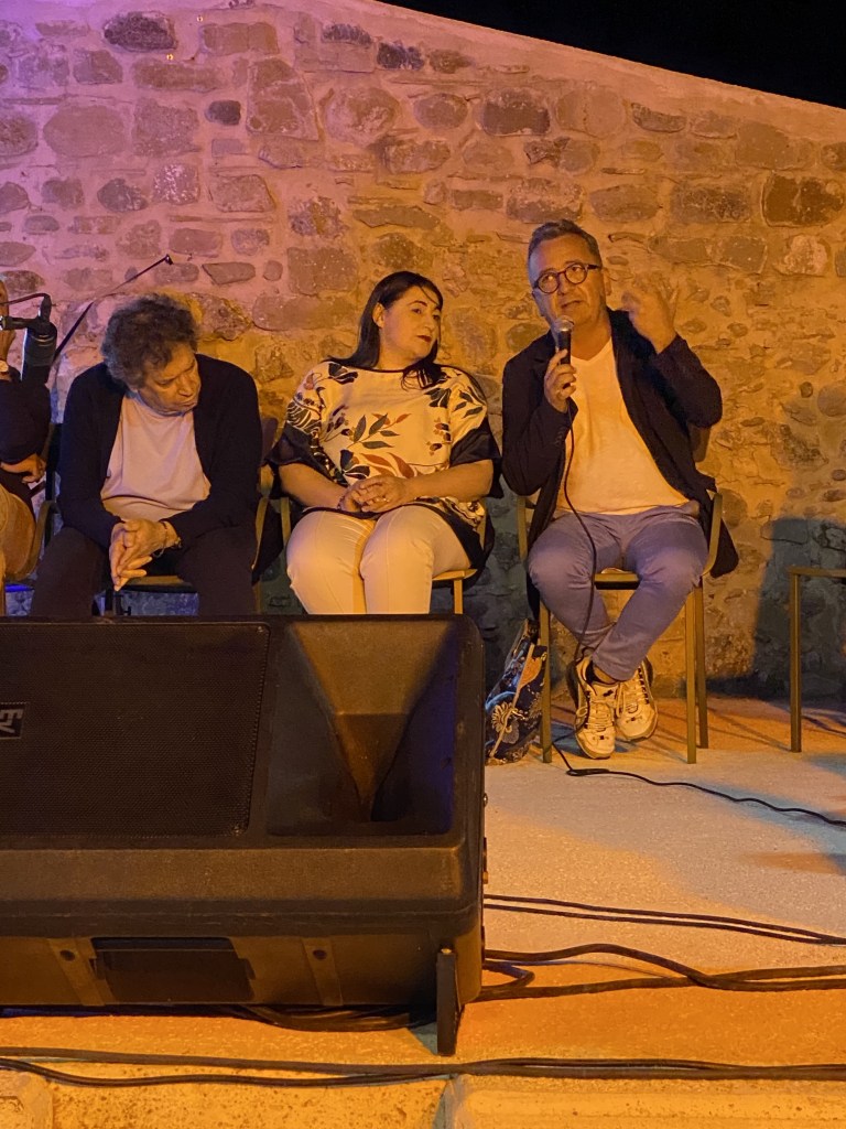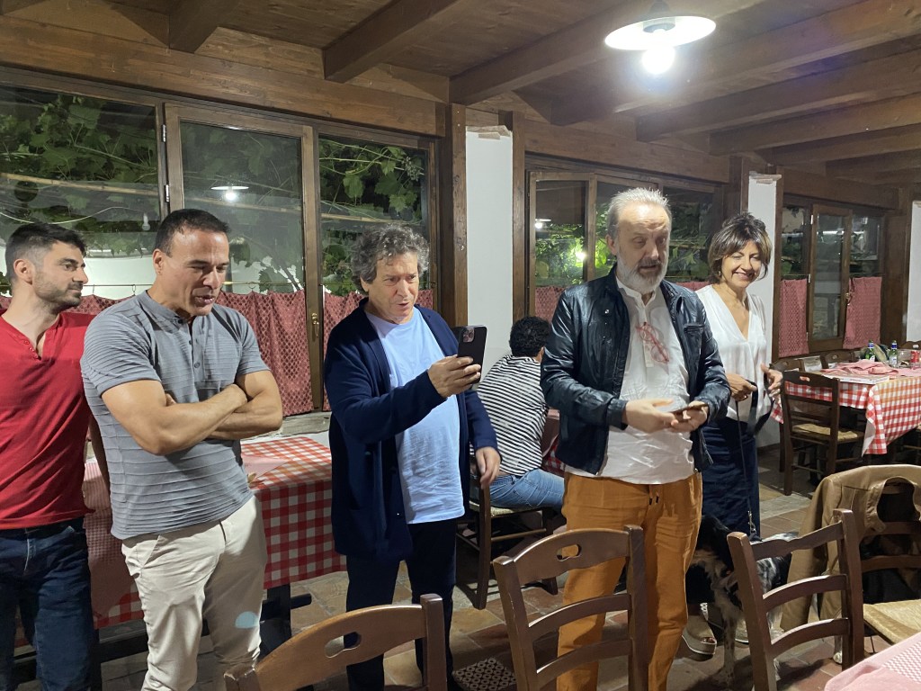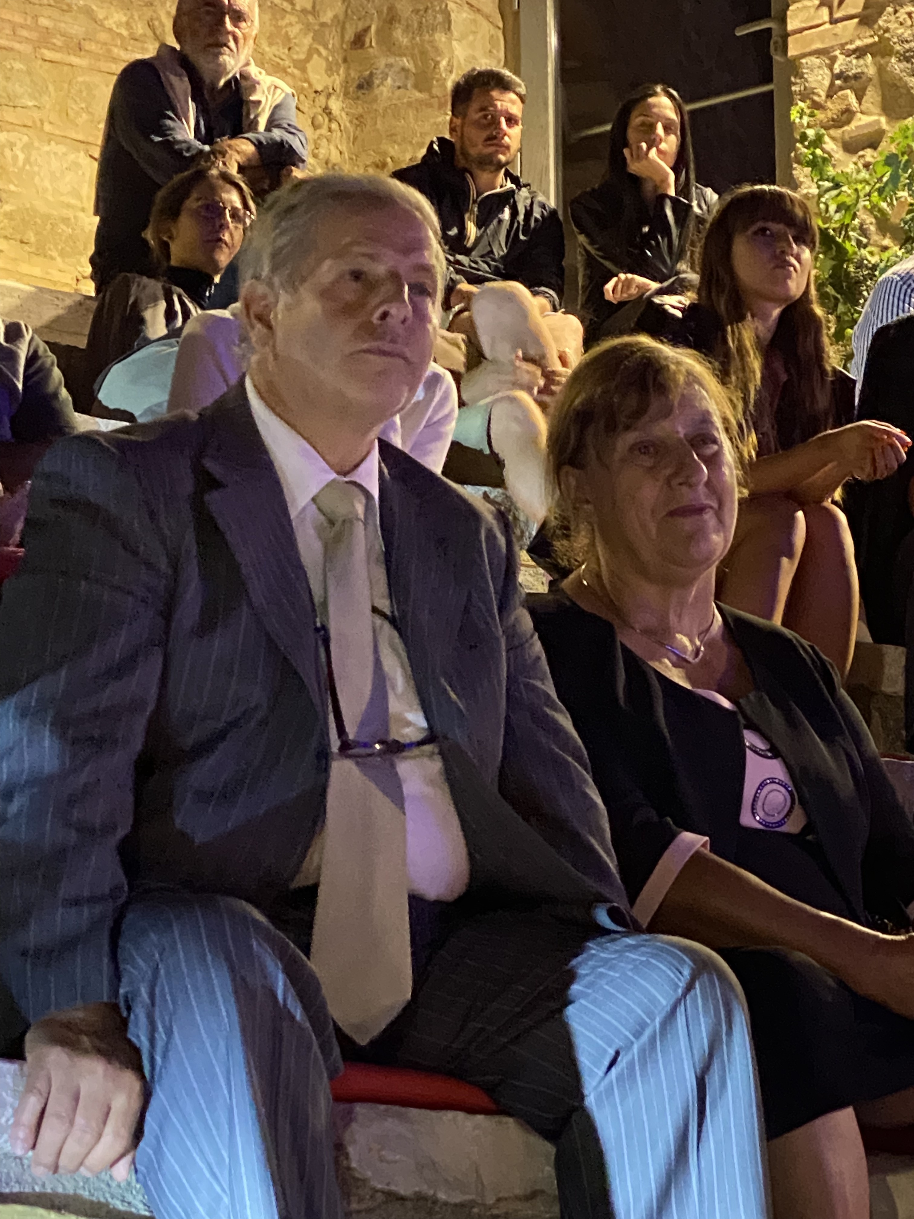 Mentre il maestro Spiniello accarezzava con i suoi pennelli uno spicchio di muro che costeggia gli antichissimi gradoni della platea del Teatro riportato alla luce, al quale si accede attraversando gli impervi vicoli del borgo, passando per il Museo delle relazioni felicitanti, appena dietro la Chiesa e la piazzetta, a fare da cornice allo spettacolo di note e suggestioni tanti gli avventori che si muovevano tra le residenze artistiche per studenti e docenti del Master in arti dello spettacolo, anch’esse frutto di una meticolosa opera di riqualificazione, con uno spazio dedicato alla mostra sul Cineasta e Partigiano cairanese, Michelangelo Frieri, curato dal professore Paolo Speranza.