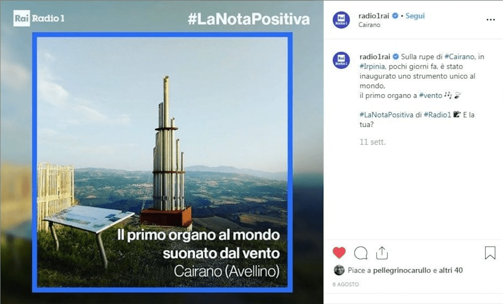 Gli alloggi serviranno agli studenti e ai turisti che scelgono di trascorrere un periodo in questa meravigliosa terra al confine tra Puglia e Basilicata la piazzetta è diventata un teatro all’aperto che può ospitare circa 200 persone, con la gradinata e il palco centrale sulla scorta dell’anfiteatro greco, tutto intorno si sviluppano le case, le botteghe, il ristorante e i laboratori. Sulla rupe sarà installato in maniera permanente un organo a canne alimentato dal vento che produrrà suoni naturali, capace di accordi tonali molto particolari, un’opera unica al mondo. Il Borgo di Cairano è la testimonianza di modelli alternativi di ricostruzione post terremoto, recuperare un borgo biologico di 300 abitanti potrebbe sembrare una follia, ma è una affascinante follia, come mi diceva un collega francese. In Italia accadono anche miracoli come questo ed è la cultura l’elemento di forza, quello su cui puntare per far restare quei giovani che ancora pensano se partire oppure no, dobbiamo riuscire ad affascinarli e così avremo una possibilità. L’agricoltura abbinata al turismo e allo sviluppo del settore culturale può generare quella micro economia che permetterebbe a borghi come quello di Cairano di sopravvivere.