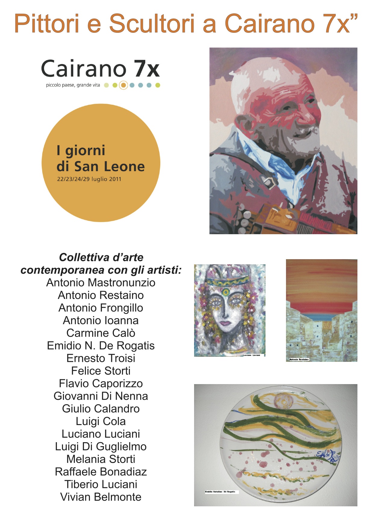 Presentazione della Collettiva d’arte contemporanea con gli artisti : Antonio Mastronunzio, Antonio Restaino, Antonio Frongillo, Antonio Ioanna, Carmine Calò, Emidio N. De Rogatis, Ernesto Troisi, Felice Storti, Flavio Caporizzo, Giovanni Di Nenna, Giulio Calandro, Luigi Cola, Luciano Luciani, Luigi Di Guglielmo, Melania Storti, Raffaele Bonadiaz, Tiberio Luciani, Vivian Belmonte
