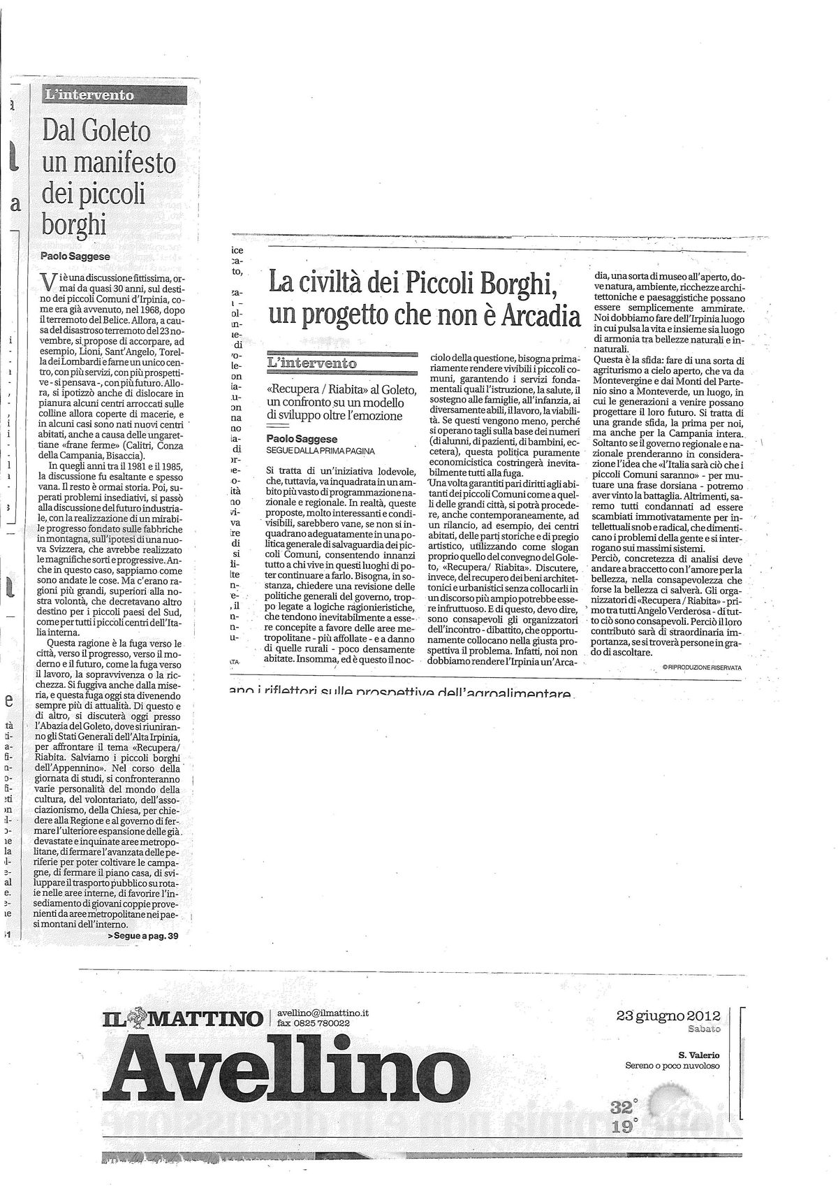 _questo articolo è stato pubblicato in prima pagina dal MATTINO nell’edizione di sabato 23 giugno 2012