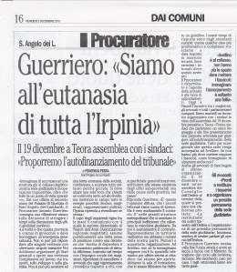 La prossima riunione di coordinamento è prevista per martedì 6 dicembre ore 10 presso la sala riunioni del Tribunale di Sant’Angelo d.L.