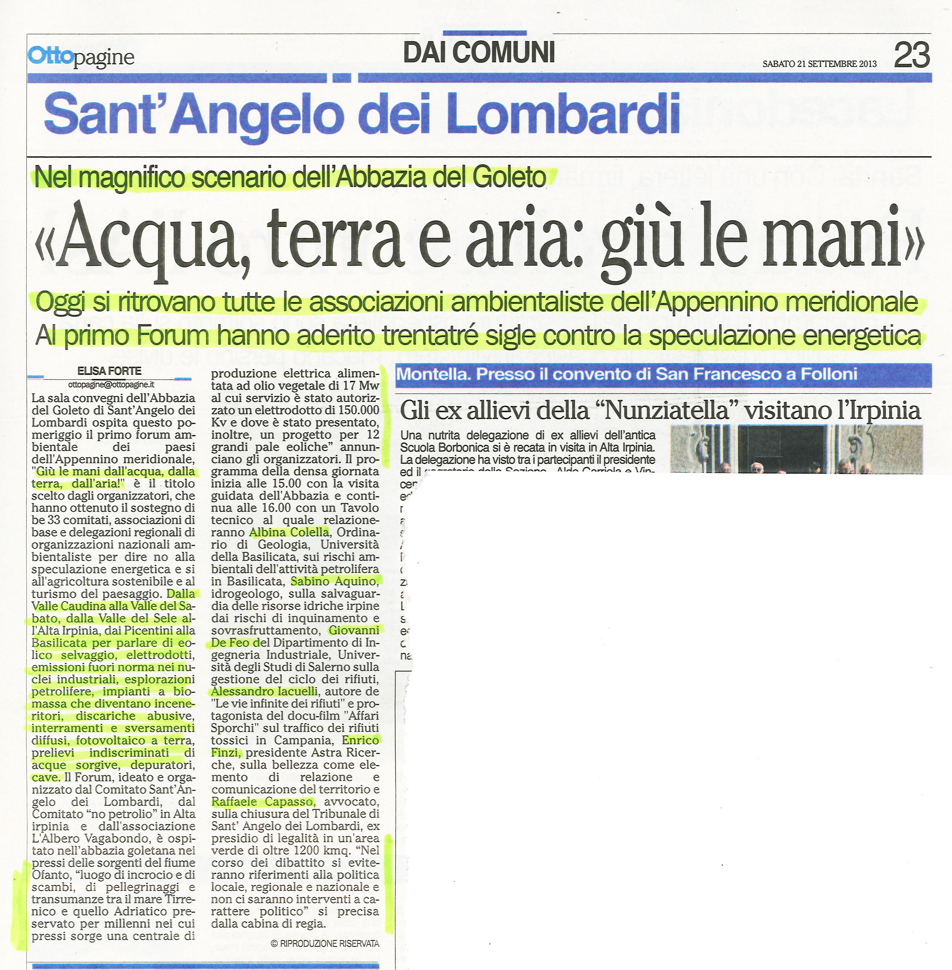 Lettera inviata da un cittadino di Flumeri ad AMBIENTE ITALIA e a REPORT; finora nessuna risposta. Chi può dare una mano ?